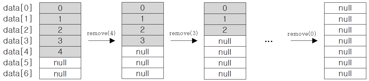 Object remove(int index) | 지정된 위치(index)에 있는 객체를 삭제하고 삭제된 객체를 반환한다. |