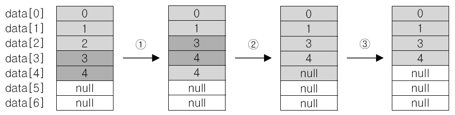 | Object remove(int index) | 지정된 위치(index)에 있는 객체를 삭제하고 삭제된 객체를 반환한다. |