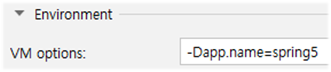 예를 들어, -Dapp.name=spring5 으로 설정한 다음, 이 값을 Environment 객체를 통해 받아올 수 있다.
